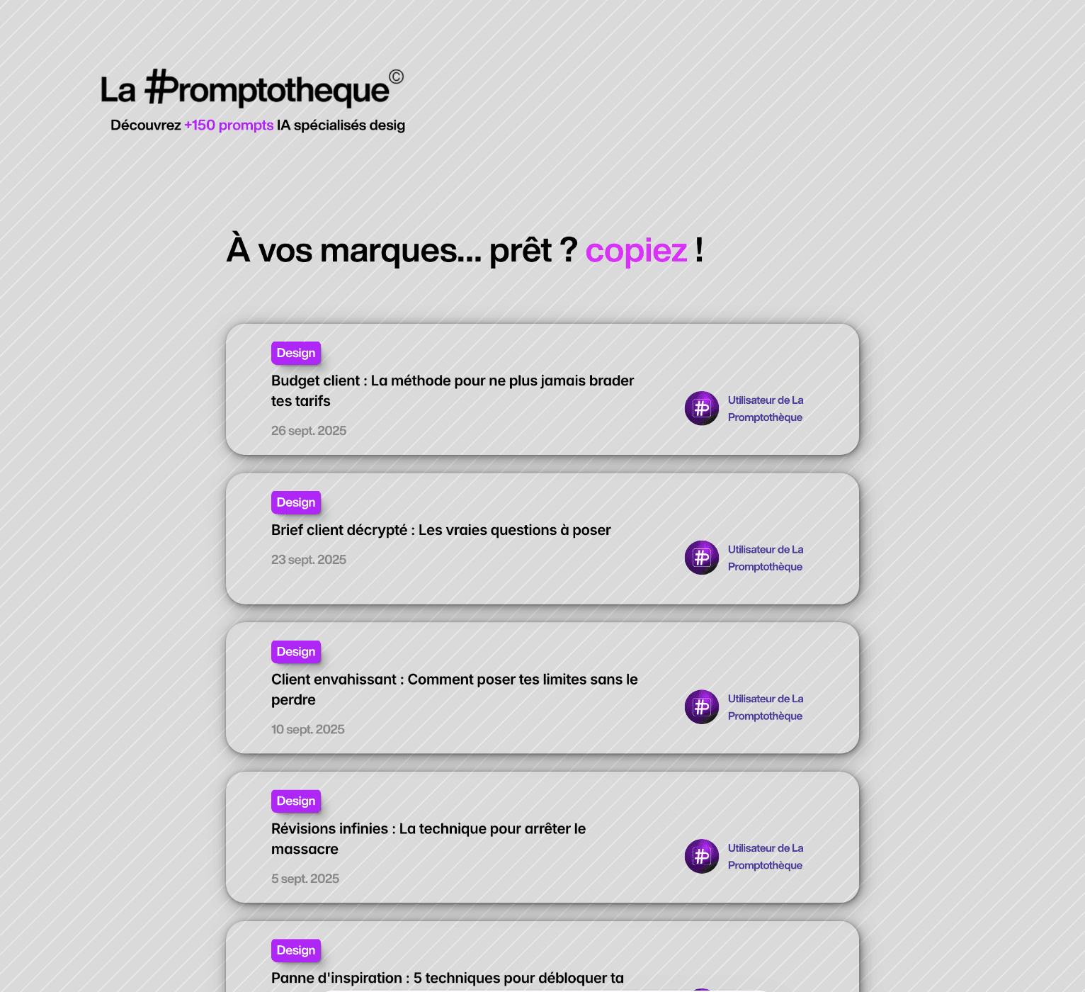 Comment utiliser les prompts de La Promptothèque ? Chaque prompt inclut des instructions détaillées, des exemples concrets et des variations adaptées à différents outils IA design.